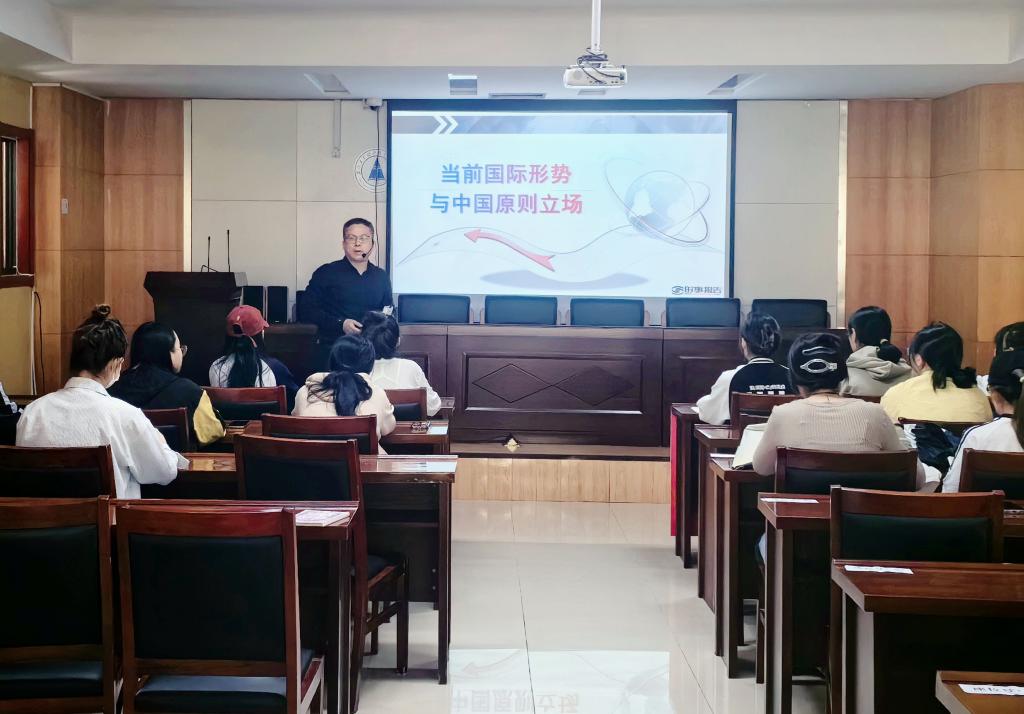 本網訊(文化旅游與教育學院:胡瑞明 審核:王厚紅 佘東)4月24日,黨委委員、副院長吳飛以“當前國際形勢與中國原則立場”為主題,為文化旅游與教育學院學前教育專業學生上了一堂生動的形勢與政策課。