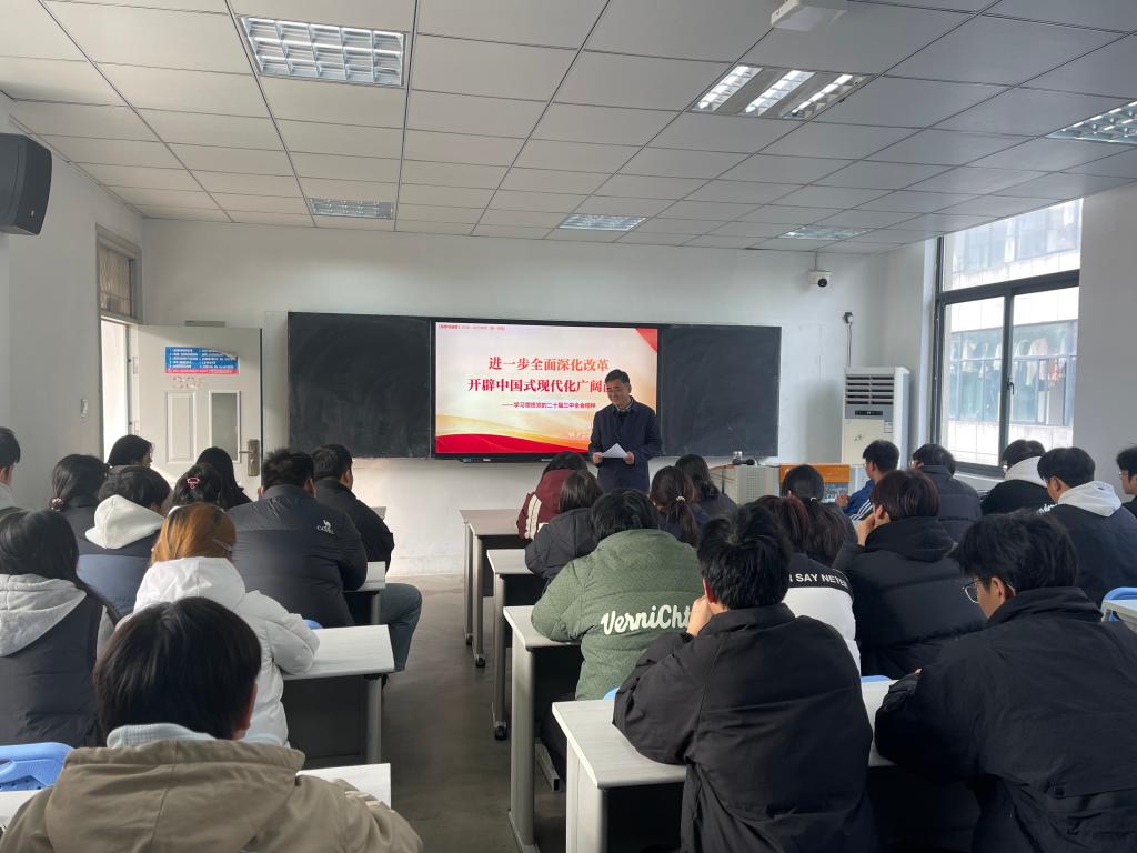 課上,許衛以二十屆三中全會召開背景作為切入點,深入淺出地闡述了全面深化改革與中國式現代化的內在關系。他指出,全面深化改革是推進中國式現代化的根本動力。在新的歷史時期,只有不斷推進經濟、政治、文化、社會、生態文明等各領域的改革,才能為中國式現代化建設注入源源不斷的活力。