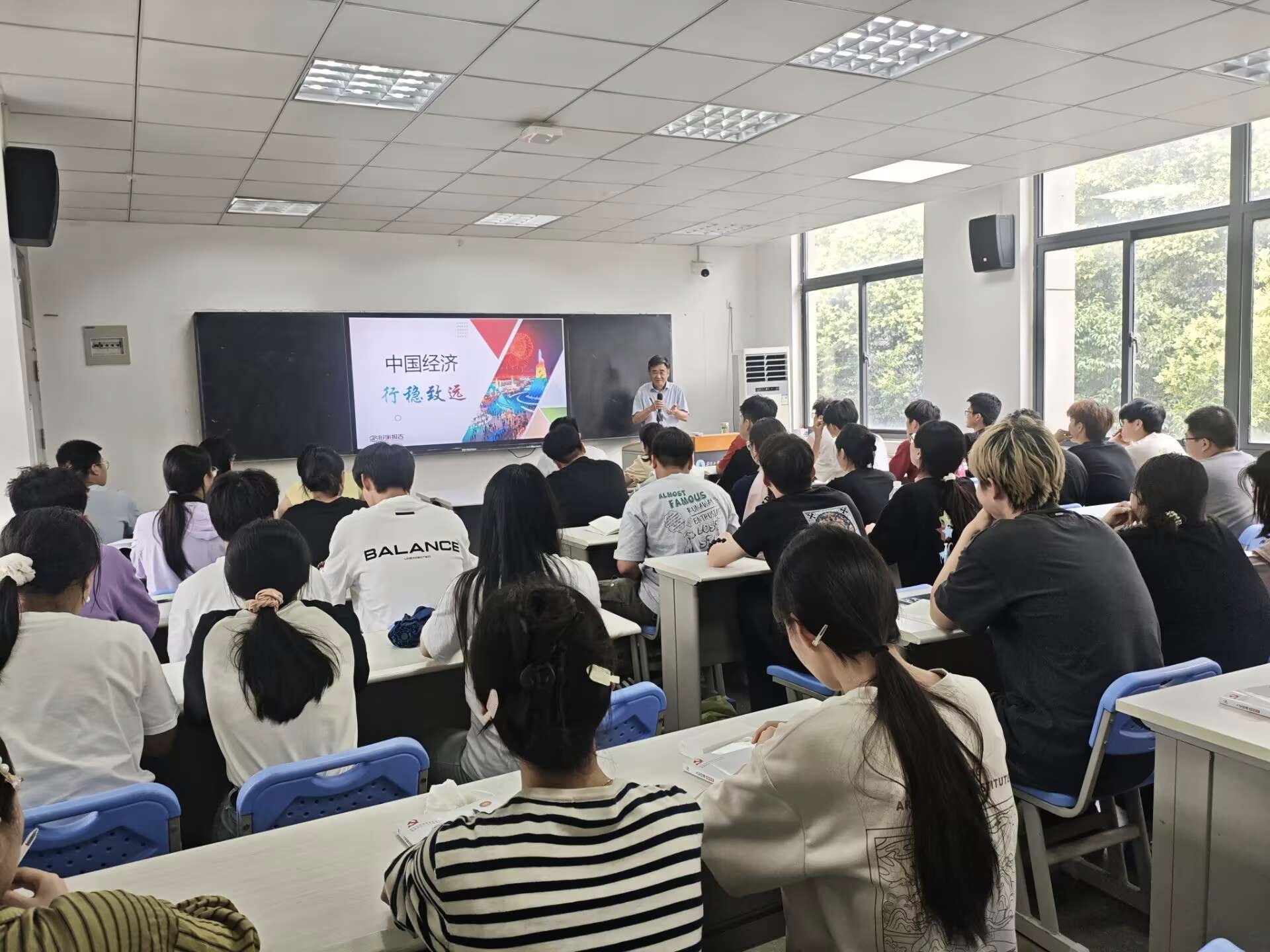 課程以互動問答開篇,許衛首先邀請學生分享他們對中國經濟的直觀感受,在輕松交流中切入主題。他系統梳理了中國經濟發展的總體態勢,指出中國經濟在過去幾十年間取得了舉世矚目的成就,經濟總量持續攀升,產業結構不斷優化升級,從傳統的農業大國逐步邁向工業強國,并在數字經濟、人工智能等新興領域嶄露頭角。通過一系列詳實的數據和生動的案例,如中國高鐵技術的飛速發展、5G通信技術在全球的領先地位等,直觀地展現了中國經濟的強勁動力與巨大潛力,全方位展現了中國經濟在傳統產業升級與新興領域突破的雙重成就,勾勒出“穩中有進、長期向好”的發展圖景。
