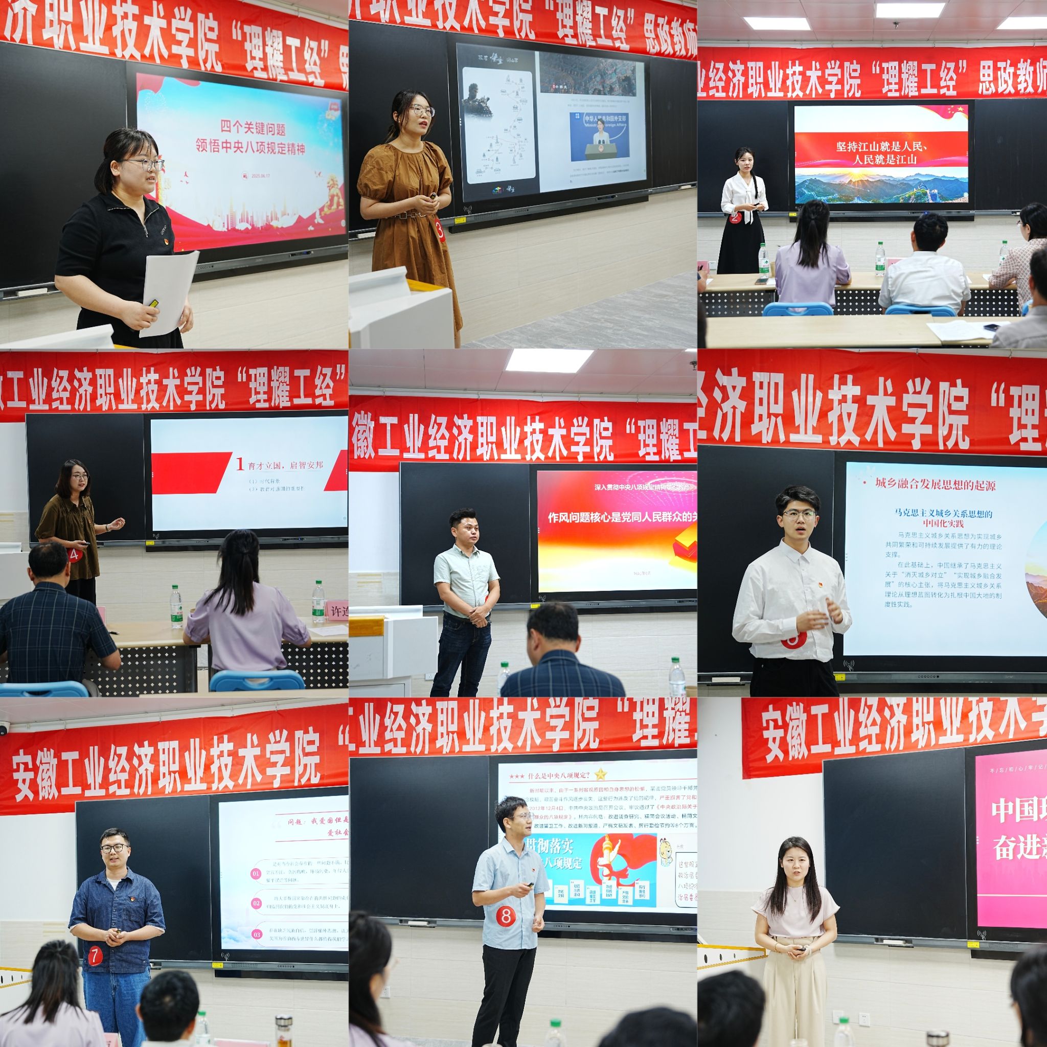 本網訊(馬克思主義學院:徐強 審核:葛軍 佘東)為深入貫徹落實習近平總書記考察安徽重要講話精神,積極推進習近平新時代中國特色社會主義思想進學校、進教材、進課堂,6月17日下午,學院“理耀工經”思政教師宣講比賽在教輔樓308教室舉辦。黨委委員、副院長吳飛出席活動并擔任評委,比賽還邀請了省直機關工委黨校、安徽建筑大學馬克思主義學院等單位專家教授擔任比賽評委。馬克思主義學院相關負責人,師生代表等40余人觀摩比賽。