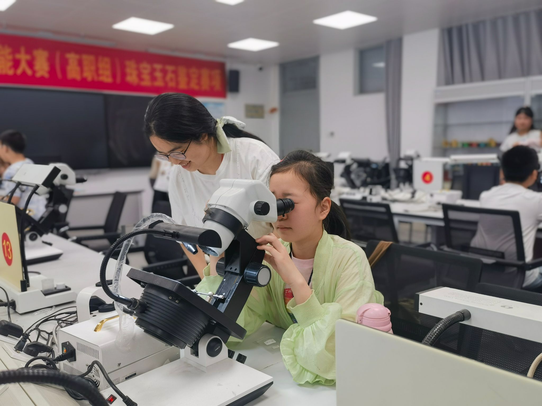 孩子們進行珠寶鑒定儀器微體驗