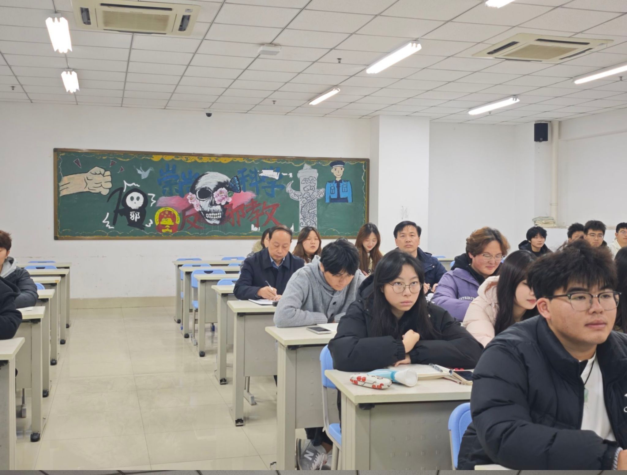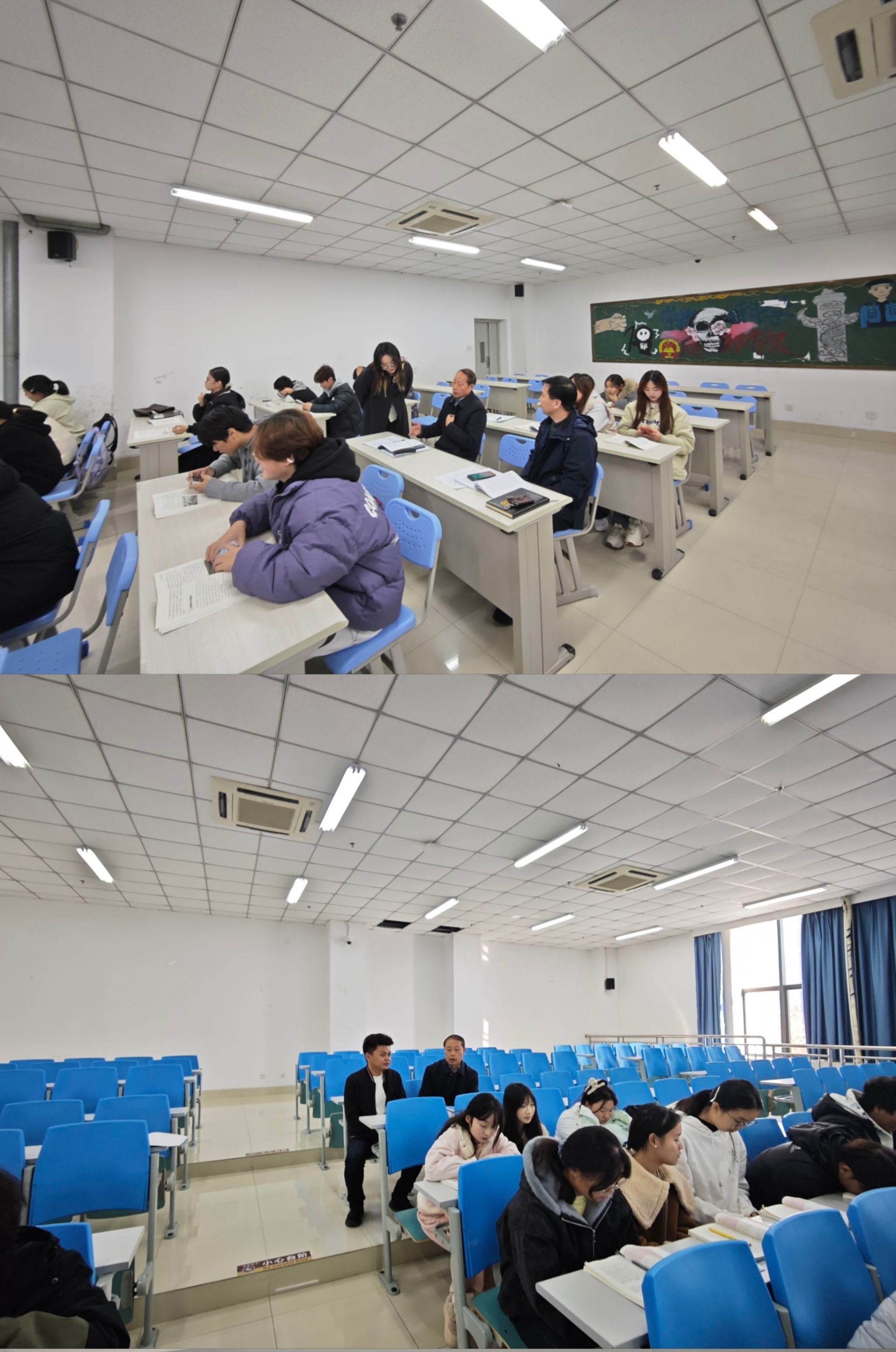 為深入貫徹落實黨的二十屆四中全會精神,扎實推進思政課課堂教學提升行動,進一步推動學院思政課改革創新,11月17日-21日,黨委副書記、院長劉仁金深入教學一線,隨機聽取了馬克思主義學院思政課教師朱俊霞講授的“形勢與政策”、陳拳講授的“毛澤東思想和中國特色社會主義理論體系概論”、喬代富講授的“思想道德與法治”課程,深入了解思政課教學組織及授課情況,指導思政課教學工作。馬克思主義學院相關負責人參加聽課。