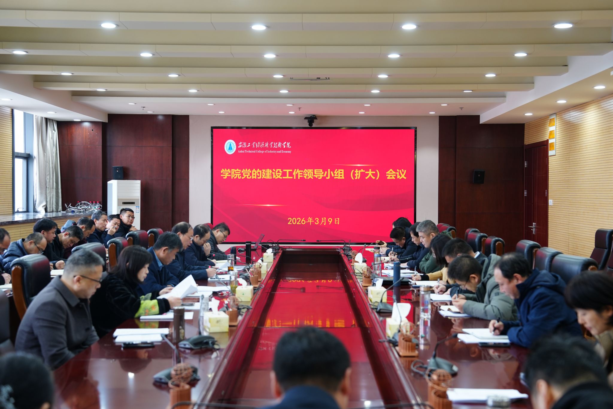 3月9日上午,學院黨委在主教第二會議室召開黨的建設工作領導小組(擴大)會議,傳達學習中央黨的建設工作領導小組會議精神和中央辦公廳通知精神、省委常委會擴大會議精神以及省地礦局黨委擴大會議暨黨的建設工作領導小組會議精神,動員部署學院樹立和踐行正確政績觀學習教育工作。黨委書記、黨的建設工作領導小組組長許衛(wèi)主持會議并講話。黨委副書記、院長劉仁金,黨委副書記、工會主席周和平領學相關內容,院領導黃雪飛、吳飛、趙凱出席會議。