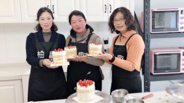 在工作人員的指導下,大家齊動手,用奶油和水果裝點出風格各異的蛋糕。活動現場洋溢著歡聲笑語,老師們享受烘焙的樂趣。