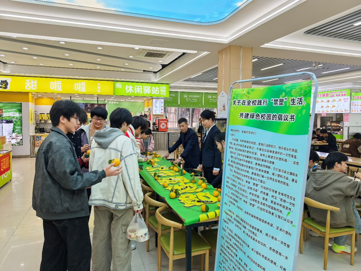 11月5日,安徽工業經濟職業技術學院四個食堂里人頭攢動,氛圍熱烈,一場主題為“踐行‘禁塑’生活,共建綠色校園”的倡議簽名活動順利舉行。活動由學院總務處發起,旨在凝聚師生共識,將綠色環保理念轉化為日常行動。