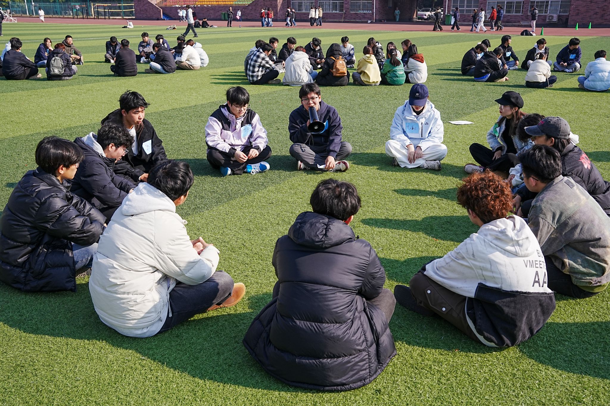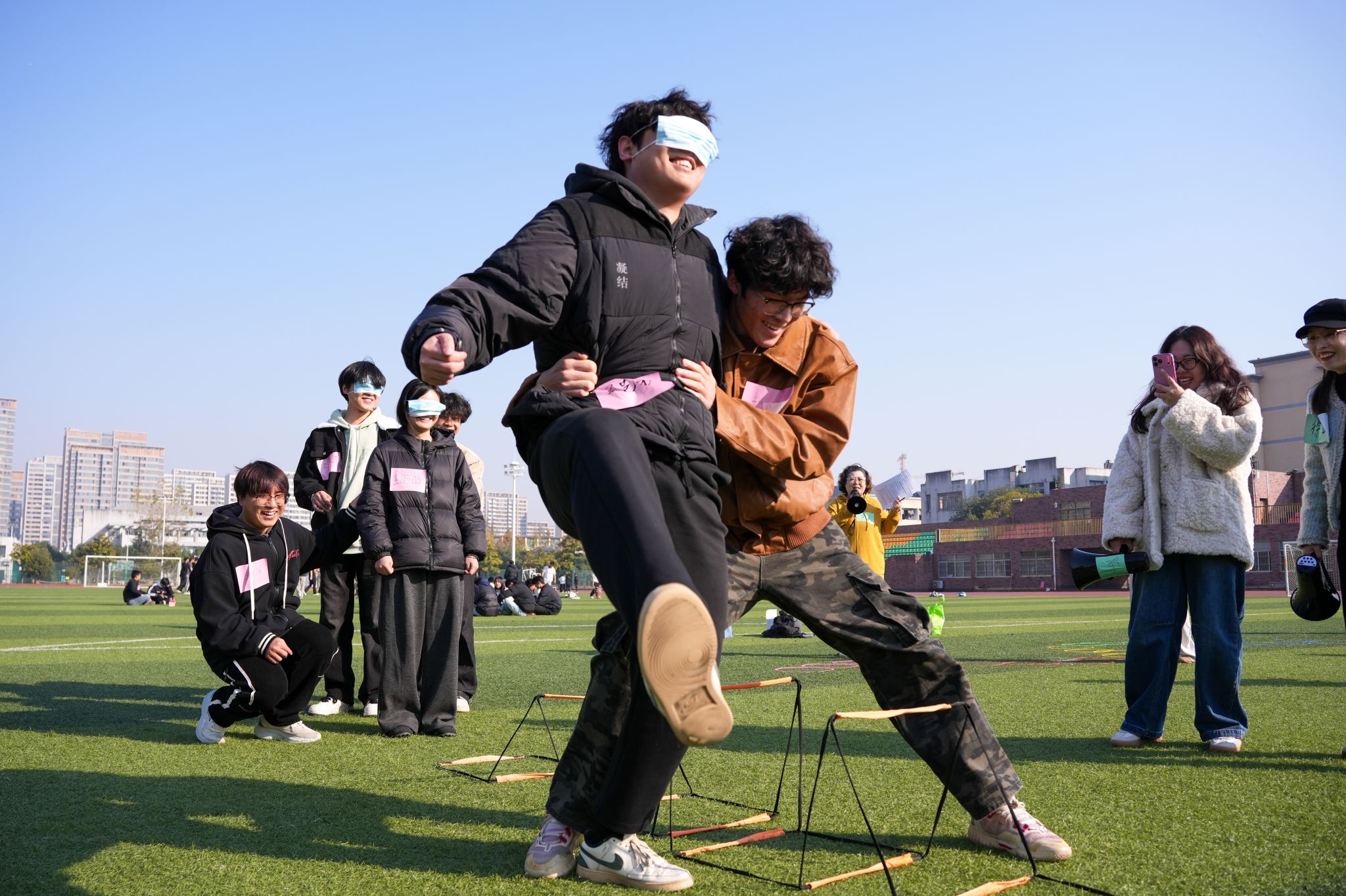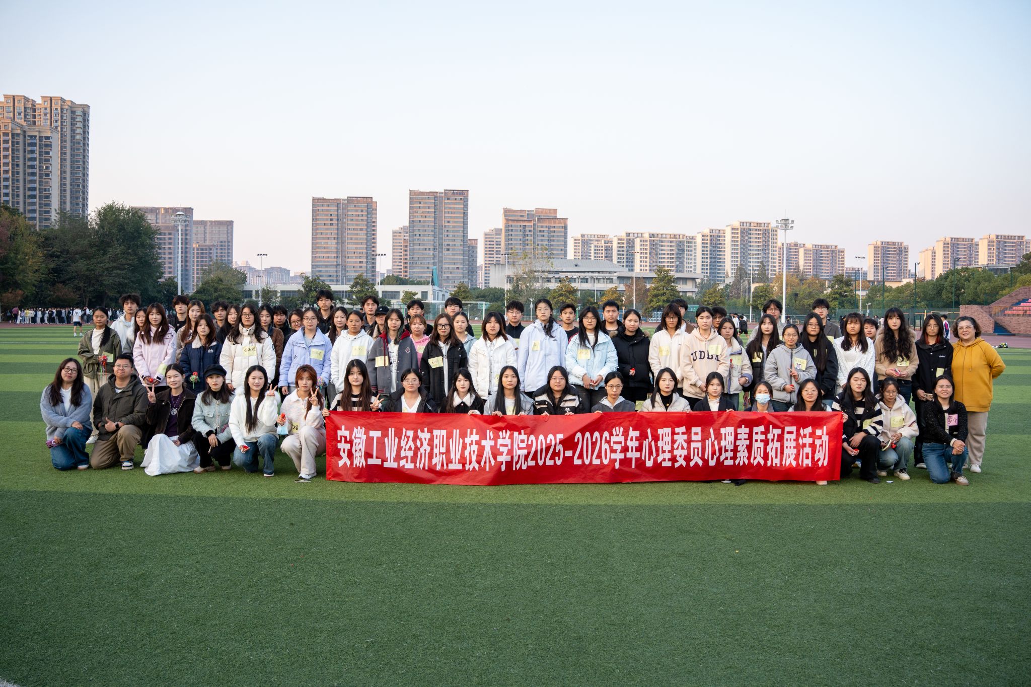 為強(qiáng)化學(xué)院心理委員隊伍建設(shè),提升朋輩心理支持能力,搭建跨年級協(xié)作交流平臺,11月21日,學(xué)生處在操場開展“心相聚,共成長”心理素質(zhì)拓展主題活動。本次活動由6名心理教師擔(dān)任活動帶領(lǐng)者,2024、2025級全體班級心理委員參與,以體驗式學(xué)習(xí)解鎖實用技能,在互動協(xié)作中凝聚守護(hù)心靈的合力。