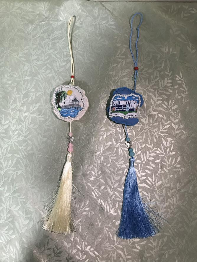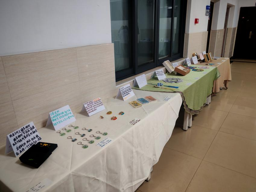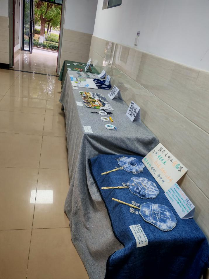 展覽共展出十余組作品,學生在創作中既大膽運用AIGC生成、數字板繪等前沿技術,又深度融合布藝扎染、掐絲琺瑯、石塑粘土、刺繡、剪紙、紙燈、纏花等傳統手工藝,賦予文旅產品新的時代內涵與審美表達。每一件作品背后,都體現著學生思維碰撞、技能互補的協作過程。