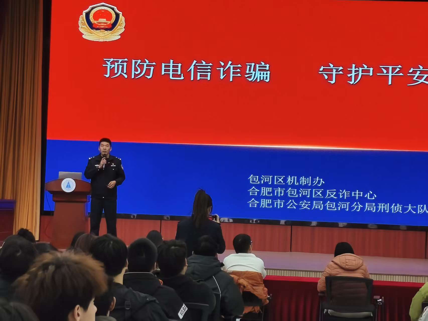 12月3日下午,“預(yù)防電信詐騙,守護(hù)平安校園”主題講座在我校新圖書(shū)館一樓報(bào)告廳舉行,合肥市公安局包河分局刑偵大隊(duì)蘇偉同志擔(dān)任主講。講座結(jié)合真實(shí)案例,深入剖析了當(dāng)前電信網(wǎng)絡(luò)詐騙的最新形勢(shì)、特點(diǎn)及防范要點(diǎn),為奮戰(zhàn)在學(xué)生工作一線的輔導(dǎo)員和骨干學(xué)生們提供了寶貴的識(shí)別與應(yīng)對(duì)指導(dǎo)。通過(guò)提升“關(guān)鍵人”的預(yù)警與教育能力,進(jìn)一步織密了校園安全防護(hù)網(wǎng)絡(luò),將“預(yù)防電信詐騙,守護(hù)平安校園”落到實(shí)處。