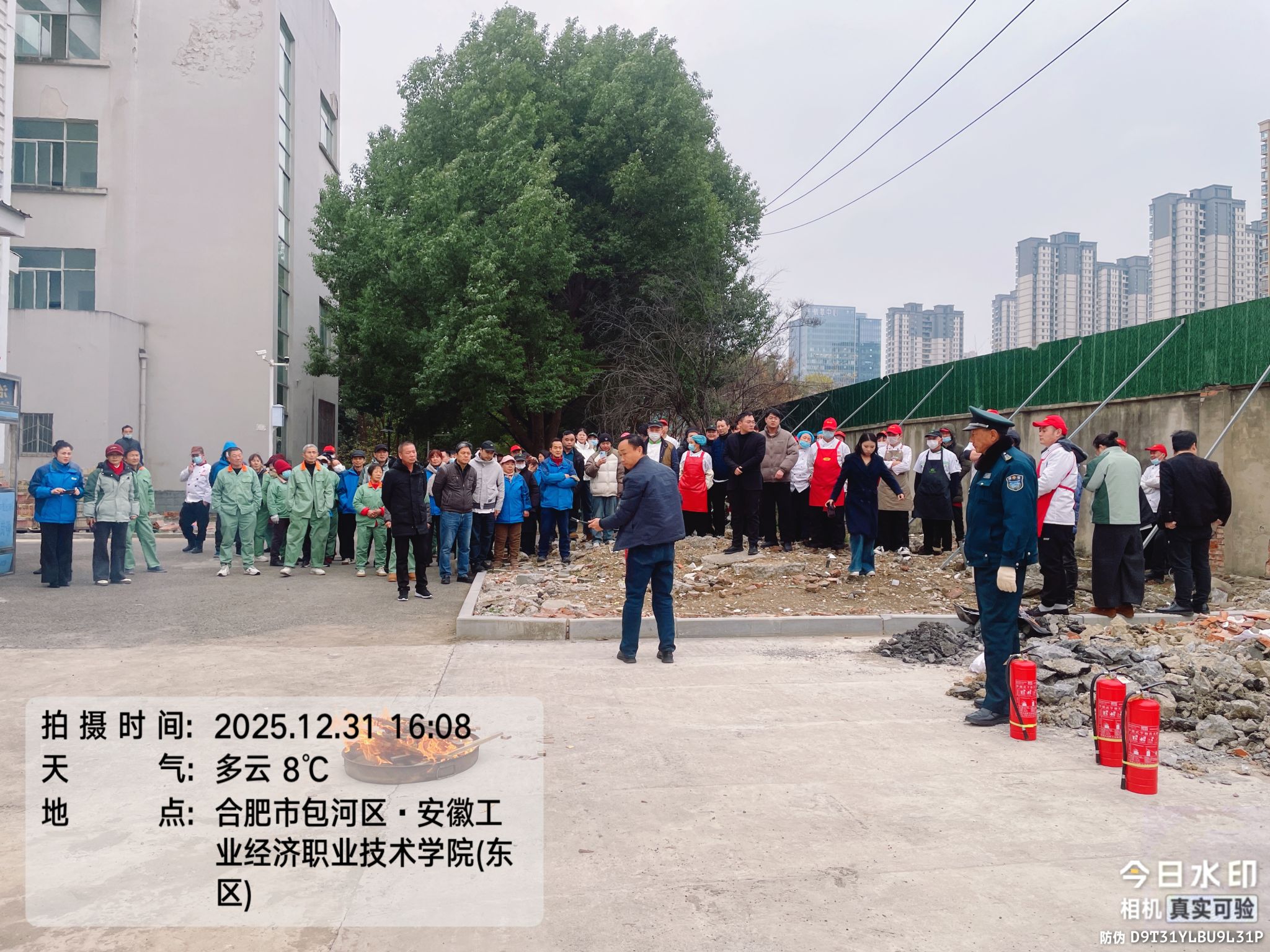 為進一步增強師生及校內各單位一線員工消防安全意識與自防自救能力,12月31日下午,安徽工業經濟職業技術學院安保處在綜合樓西側組織開展了滅火器使用培訓及滅火實操演練。