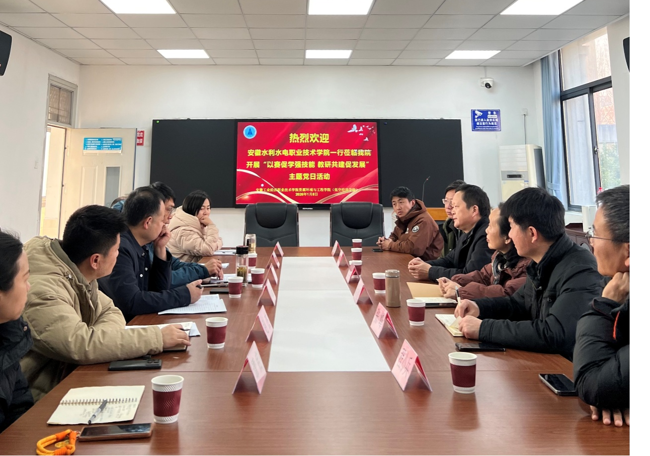 1月8日,安徽水利水電職業(yè)技術(shù)學(xué)院資源與環(huán)境工程學(xué)院黨總支書記宋小紅、院長劉先春、副院長張峰一行到訪資源環(huán)境與工程學(xué)院(低空經(jīng)濟(jì)學(xué)院),雙方共同開展“以賽促學(xué)強(qiáng)技能,教研共建謀發(fā)展”主題黨日活動暨教育教學(xué)改革交流研討。資源環(huán)境與工程學(xué)院黨總支副書記宋慶福、副院長王德高及支部書記、教研室主任參會。