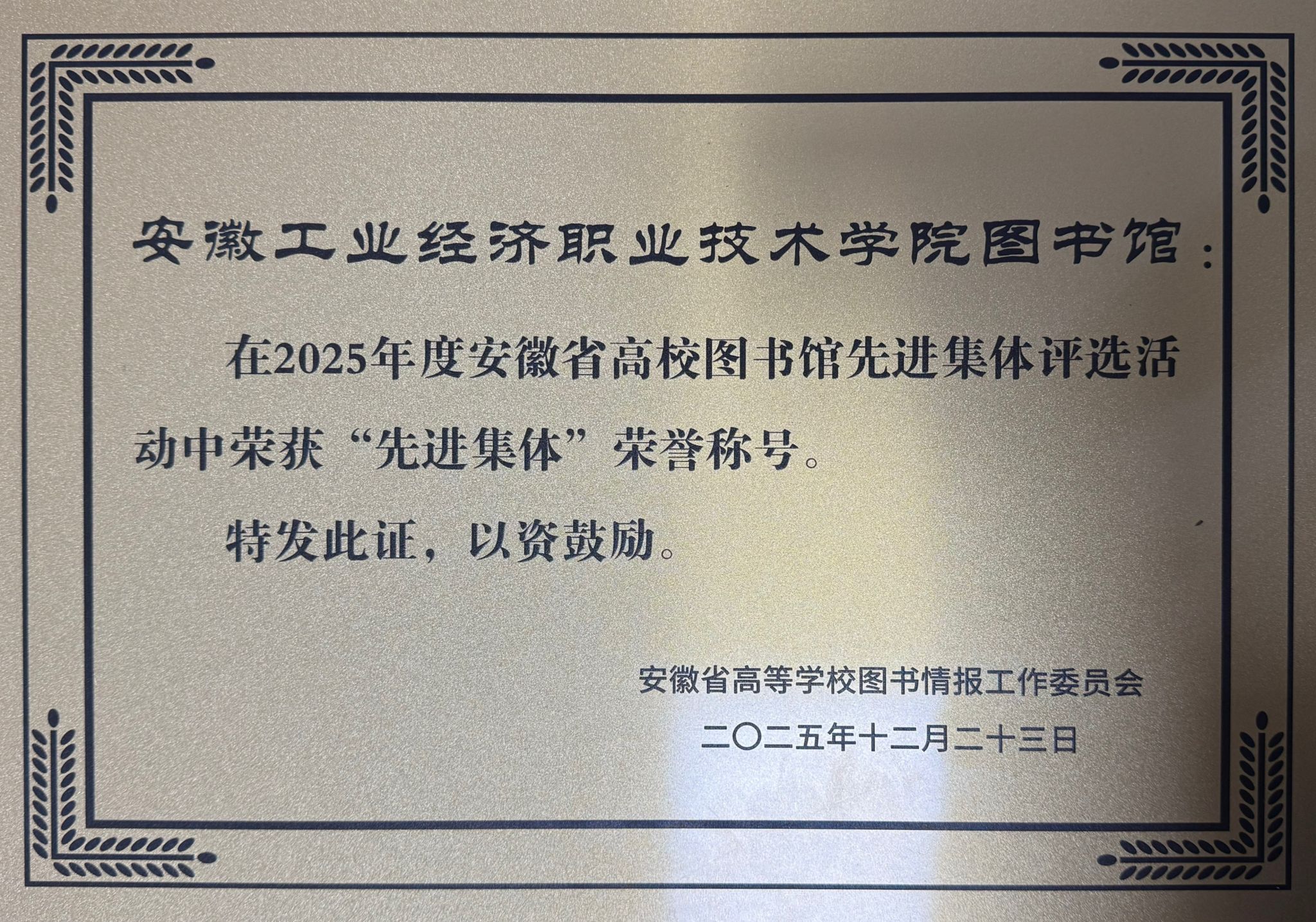 立足新起點(diǎn),圖書館將以此次榮譽(yù)為動(dòng)力,認(rèn)真貫徹落實(shí)年會(huì)精神,持續(xù)深化服務(wù)內(nèi)涵、加快服務(wù)創(chuàng)新、提升服務(wù)效能,全力建設(shè)與學(xué)院發(fā)展目標(biāo)相適應(yīng)、與師生需求相契合的現(xiàn)代化智慧圖書館,為學(xué)院事業(yè)高質(zhì)量發(fā)展注入更強(qiáng)支撐力。(圖書館:汪瑞 審核:劉紅祥 張麗)