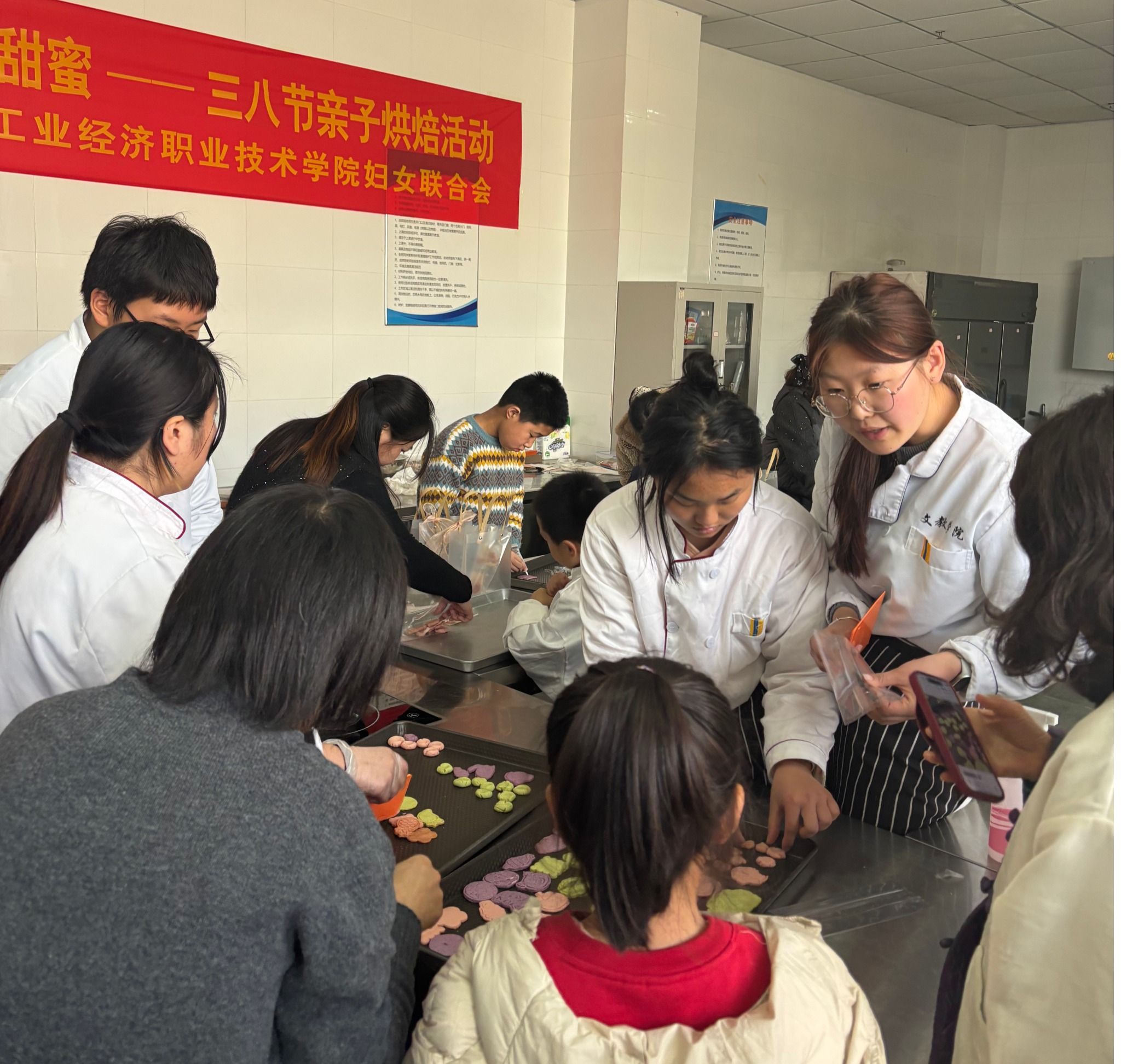 為慶祝第116個“三八”國際勞動婦女節,3月8日下午,院婦聯在文化旅游與教育學院烘焙室舉辦了“感恩她時光 小手共創甜蜜”慶三八親子DIY主題活動,來自各部門的數十組女教職工家庭參加活動。