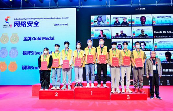 本網(wǎng)訊(計(jì)算機(jī)與藝術(shù)學(xué)院供稿 審核:佘東)11月1至6日,2022金磚國家職業(yè)技能大賽決賽在廈門舉辦,我院朱曉彥、王慶宇老師指導(dǎo)的參賽選手甄揚(yáng)、張鵬杰、徐浩然在“網(wǎng)絡(luò)安全”賽項(xiàng)中以總分第一的成績獲得國際賽金牌、國內(nèi)賽一等獎(jiǎng)。孫榮會(huì)老師指導(dǎo)的學(xué)生謝奧成在“云計(jì)算”賽項(xiàng)中獲得國內(nèi)賽二等獎(jiǎng),余戰(zhàn)秋老師指導(dǎo)的學(xué)生張家輝在“區(qū)塊鏈”賽項(xiàng)中獲得國內(nèi)賽三等獎(jiǎng)。我院也是安徽省13所參賽院校中唯一獲得金獎(jiǎng)的高職院校。