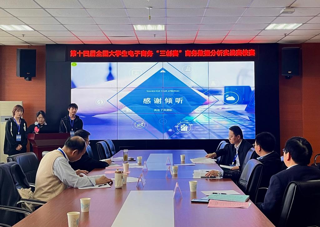 此次三創賽校級賽共有14支隊伍參加,采用PPT匯報+答辯的形式進行,各參賽小組結合詳盡的數據分析與生動的案例,從項目背景、市場需求、商業模式、競爭分析、財務分析等方面分享了項目的創新點和市場前景。