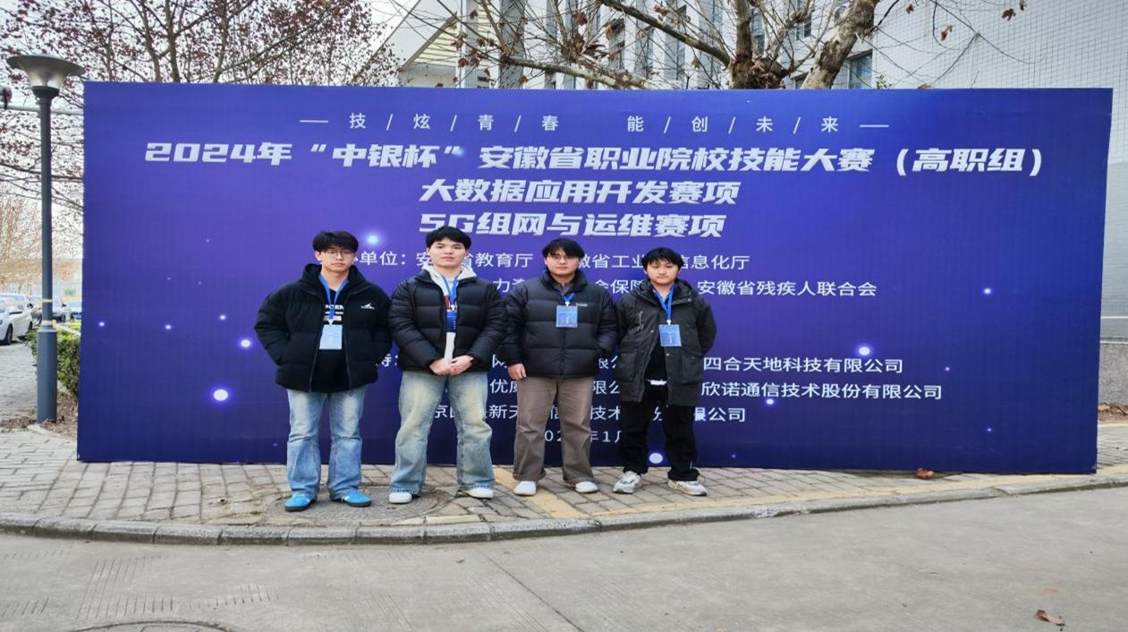 本網訊(電氣工程學院:程玲玲 審核:郭強 )2025年1月8日,由安徽省教育廳、安徽省工業和信息化廳、安徽省人力資源和社會保障廳、安徽省殘疾人聯合會主辦,安徽職業技術學院承辦的2024年“中銀杯”安徽省職業院校技能大賽(高職組)5G組網與運維賽項圓滿舉行。電氣工程學院學子洪顥東、張宇鑫、祝周杰和廖繼剛組成的兩支參賽隊經過激烈角逐,從參與比賽的27支隊伍中脫穎而出,分別榮獲一等獎和二等獎。