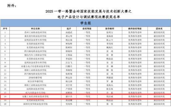 此次獲獎(jiǎng),既是對(duì)智能制造學(xué)院人才培養(yǎng)方案、課程體系與實(shí)踐教學(xué)成果的充分肯定,也為學(xué)生技能成長(zhǎng)與職業(yè)發(fā)展增添了信心與動(dòng)力。展望未來,學(xué)院將繼續(xù)緊扣產(chǎn)業(yè)發(fā)展需求,深化教育教學(xué)改革,加強(qiáng)高素質(zhì)技術(shù)技能人才培養(yǎng),為電子信息產(chǎn)業(yè)高質(zhì)量發(fā)展持續(xù)輸送新鮮血液與堅(jiān)實(shí)力量。(智能制造學(xué)院:錢宗斌 審核:孫繼勝 張麗 )