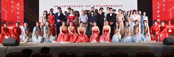 會上還集中展演了院團委和各二級學院團總支編排的精彩文藝節目。開場舞《正青春》展現了青年學子積極奮發、陽光樂觀的精神面貌;舞蹈《沁蓮》以高潔的蓮花設喻,充滿青春的理想氣息,《紅日》帶領大家重溫激動人心的光輝歲月;歌曲《最美的期待》展示了青年學子不忘歷史、昂揚向上的時代擔當。最后,表彰大會在謝幕歌曲《明天會更好》的樂聲中落下帷幕。