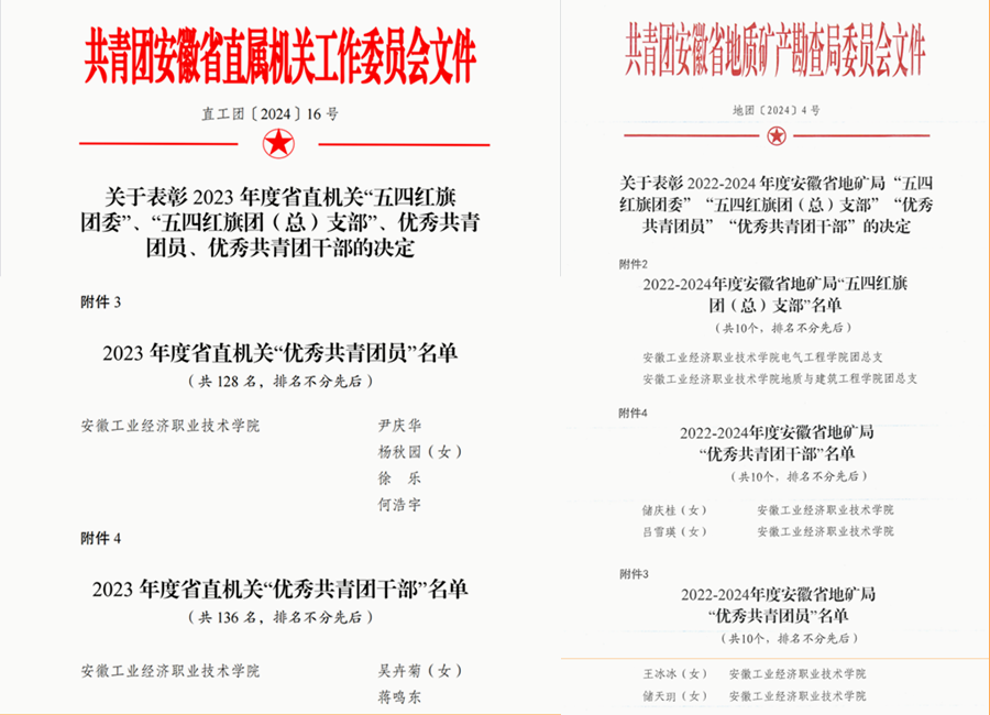 本次我院基層團(tuán)組織和個(gè)人分別獲得共青團(tuán)安徽省直屬機(jī)關(guān)工作委員會(huì)和安徽省地礦局團(tuán)委表彰,充分體現(xiàn)了省直機(jī)關(guān)工委和局團(tuán)委對我院團(tuán)學(xué)工作的高度重視和肯定。近些年來,在省直機(jī)關(guān)團(tuán)工委、省地礦局團(tuán)委和學(xué)院黨委的堅(jiān)強(qiáng)領(lǐng)導(dǎo)和正確指導(dǎo)下,學(xué)院團(tuán)委始終堅(jiān)持以習(xí)近平新時(shí)代中國特色社會(huì)主義思想為指導(dǎo),深入學(xué)習(xí)貫徹習(xí)近平新時(shí)代中國特色社會(huì)主義思想,增強(qiáng)“四個(gè)意識(shí)”、堅(jiān)定“四個(gè)自信”、衷心擁護(hù)“兩個(gè)確立”,忠誠踐行“兩個(gè)維護(hù)”,團(tuán)結(jié)帶領(lǐng)廣大團(tuán)員青年堅(jiān)定不移聽黨話、跟黨走,為推進(jìn)我院“雙高”建設(shè)發(fā)展貢獻(xiàn)青春力量。