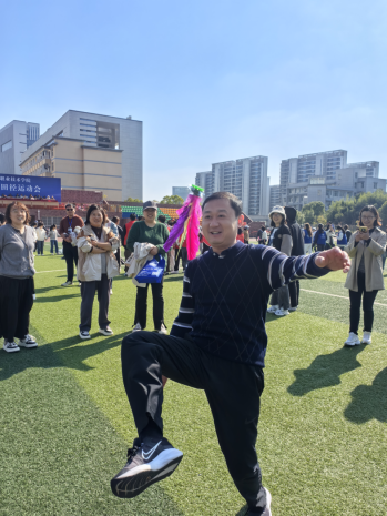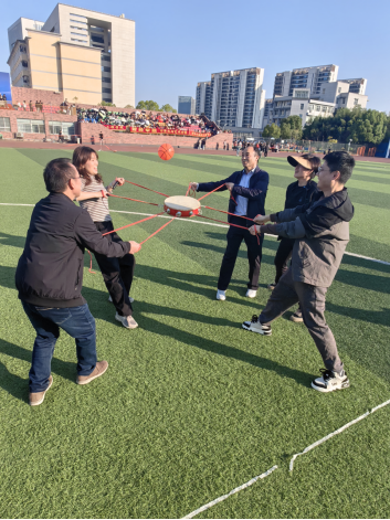 本屆教職工趣味運(yùn)動(dòng)會(huì)分團(tuán)體賽和個(gè)人賽兩部分,個(gè)人賽包含一分鐘跳繩、一分鐘踢毽子、“手腳并用”,團(tuán)體賽項(xiàng)目有“同心擊鼓”“智傳呼啦圈”“飛盤(pán)九宮格”。項(xiàng)目新穎有趣,充分調(diào)動(dòng)了教職工們的肢體協(xié)調(diào)能力和團(tuán)隊(duì)合作能力。賽場(chǎng)上,老師們精神抖擻,充滿活力,現(xiàn)場(chǎng)掌聲、高呼聲、歡笑聲此起彼伏。運(yùn)動(dòng)中的教職工們把日常繁重勞累的教學(xué)科研和工作任務(wù)暫時(shí)放下來(lái),充分享受了運(yùn)動(dòng)帶來(lái)的喜悅和快樂(lè),展現(xiàn)出團(tuán)結(jié)協(xié)作、健康積極的精神面貌。