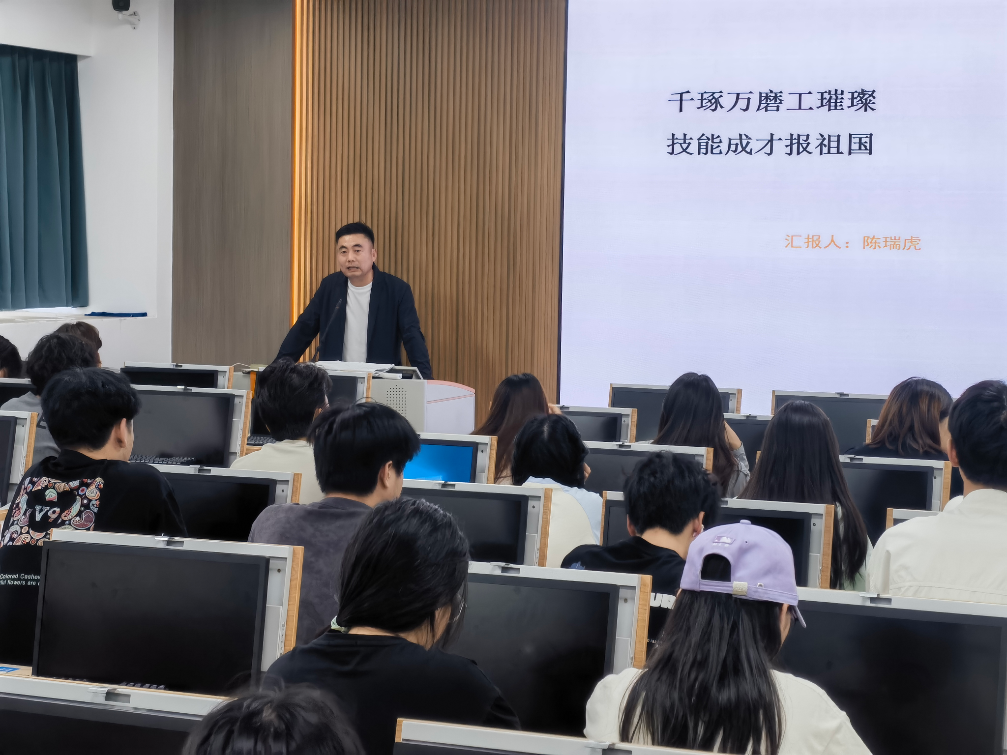 本網訊(商貿學院:黃民 蔣夢彤 審核:宋慶福 佘東)近日,商貿學院知行講堂第4期在主教樓602舉行。本期講堂以“匠心啟夢,篤志前行”為主題,特邀學院副教授陳瑞虎擔任主講嘉賓,為師生們帶來了一場關于工匠精神與技能報國的深度分享。