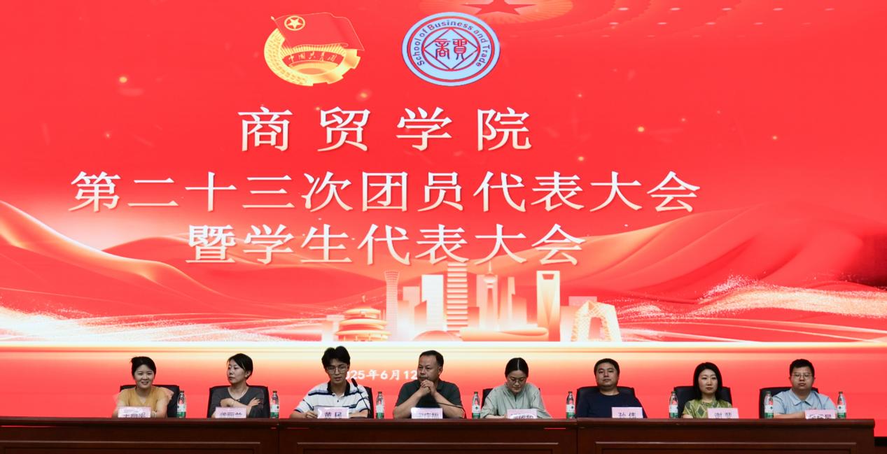 本網訊(商貿學院:趙碩 蔣夢彤 黃民 審核:宋慶福 佘東)6月12日,圖書館一樓報告廳內國歌嘹亮、掌聲雷動,商貿學院第二十三次團員代表大會暨學生代表大會在此隆重舉行。來自各年級、專業的116名學生代表肩負使命齊聚一堂,商貿學院黨總支、團總支相關負責人出席會議,共同見證這場凝聚青春智慧、共謀發展藍圖的盛會。