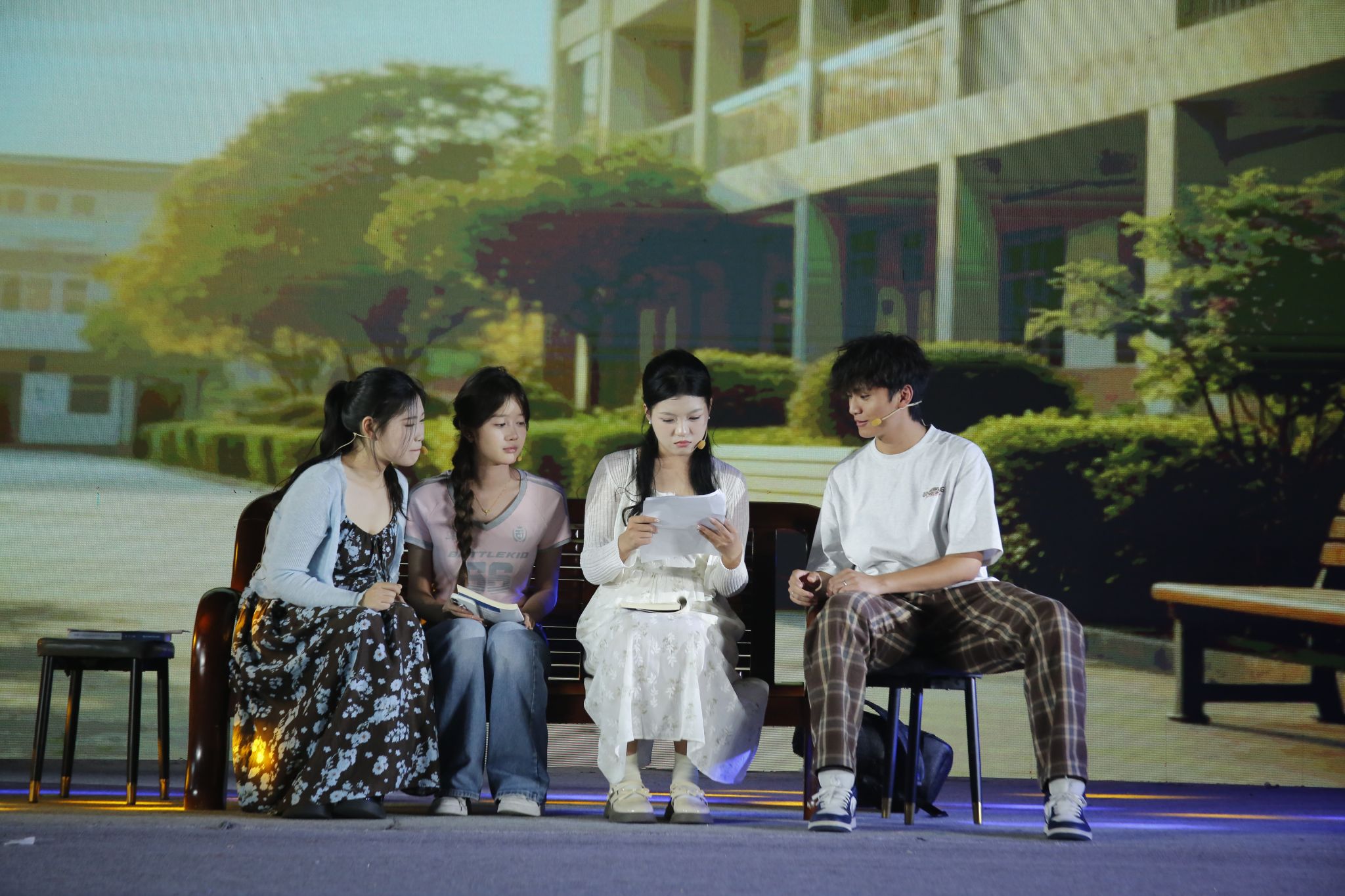 在冷光與剪影交織的舞臺上,情景劇《青春回聲墻》復(fù)刻了大學(xué)生面對大學(xué)生涯困境的深夜獨(dú)白,主演黃心蕊以蜷縮的肢體語言引發(fā)師生共鳴,觀眾席泛起陣陣嘆息的漣漪。聯(lián)創(chuàng)作品《碎紙成翼》以撕碎診斷書的藝術(shù)動作象征自我救贖力量的迸發(fā),當(dāng)演員們定格為“擁抱自我”的集體造型時(shí),臺下師生觀眾以熱烈的掌聲表達(dá)內(nèi)心涌動的情感。