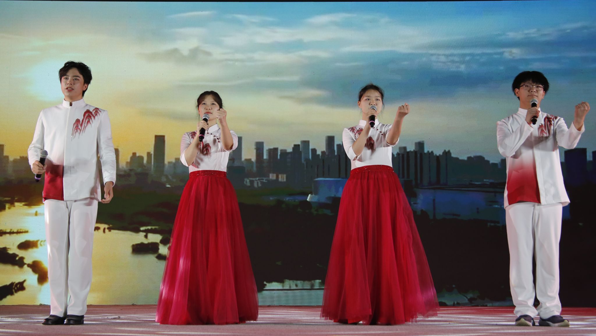 《青春中國》將晚會推向高潮,背景屏幕上閃現(xiàn)“復(fù)興號”穿山越嶺、火箭直沖云霄的壯闊影像,激蕩起現(xiàn)場所有師生埋藏于心的熱血共鳴。當(dāng)全體演員群誦《請黨放心,強(qiáng)國有我》的鏗鏘誓言余音落定,主持人以深情寄語穿透沸騰的掌聲,“愿每一位青年,于自省中鍛造堅(jiān)韌,于抵御中淬煉成長,于奉獻(xiàn)中點(diǎn)燃信仰!” 這場青春與時(shí)代的交響,在此刻定格為永恒的精神坐標(biāo),引領(lǐng)著無數(shù)青年勇往直前。