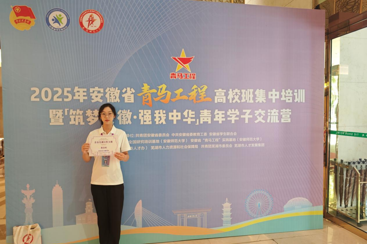 8月26日至29日,2025年安徽省“青馬工程”高校班集中培訓暨“筑夢安徽?強我中華”青年學子交流營在蕪湖成功舉辦。我院選派校團委學生會成員郜春暄同學,與來自全省119所高校的200名青年大學生一同參加線下集中培訓。