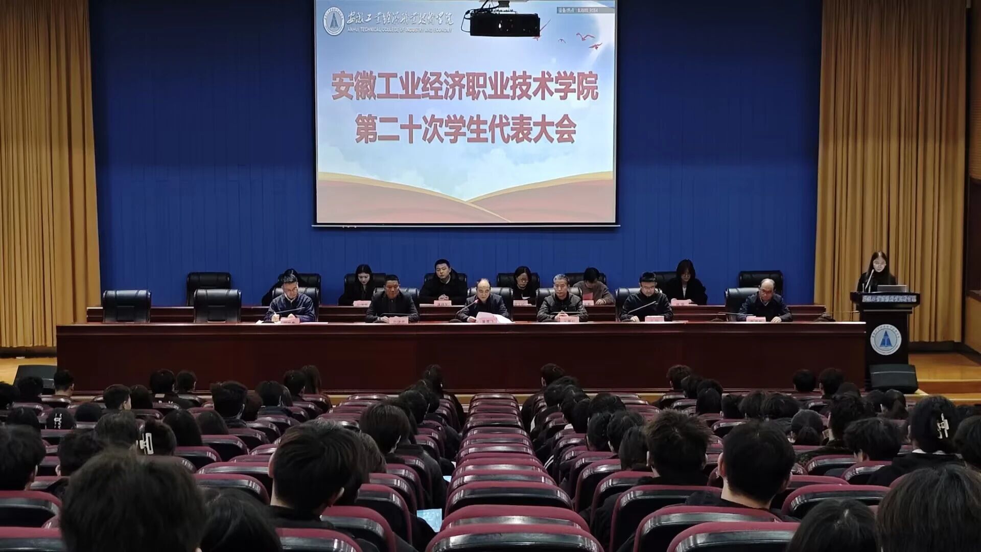 大會在激昂的國歌聲中拉開帷幕。緊接著王俊宣讀了安徽省學生聯合會《關于同意召開安徽工業經濟職業技術學院第二十次學生代表大會的批復》。