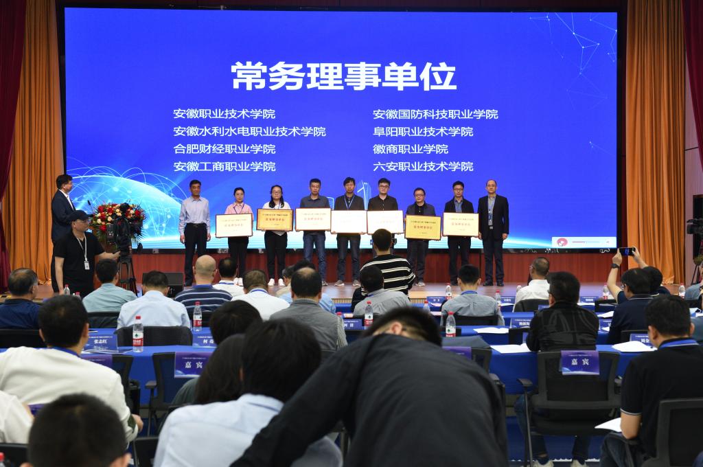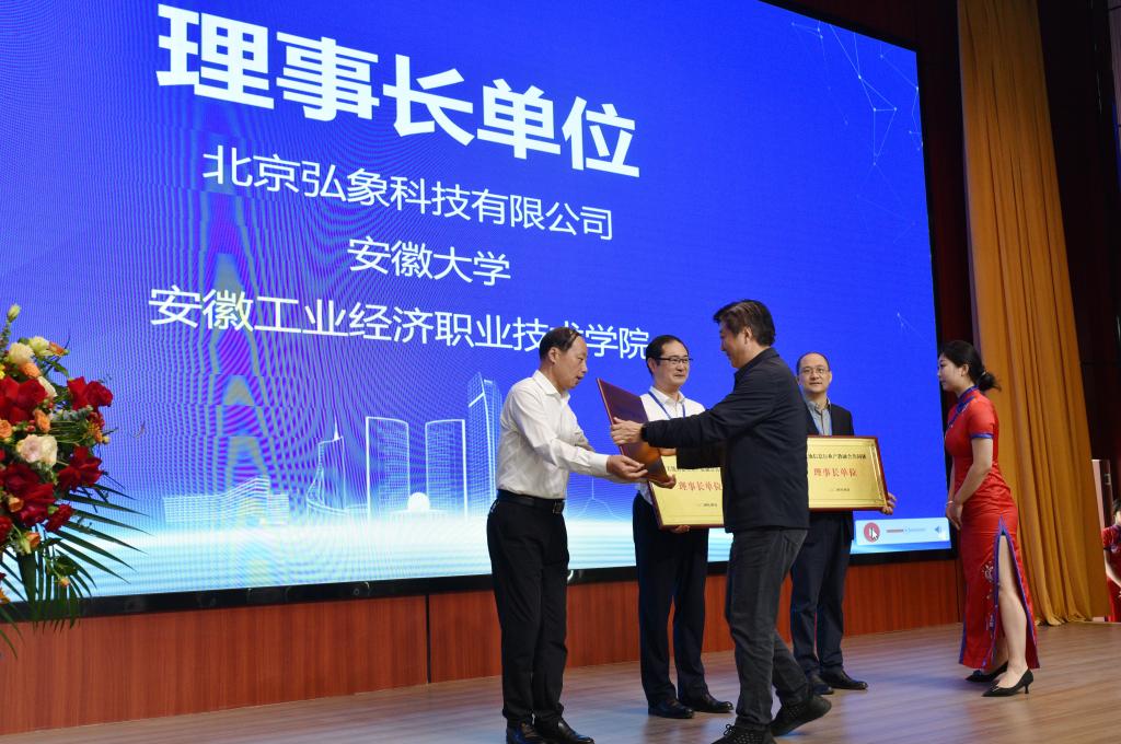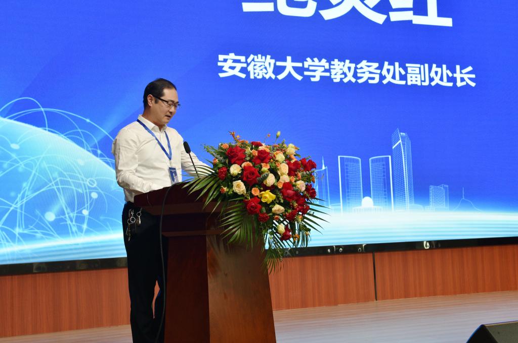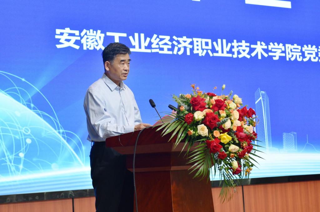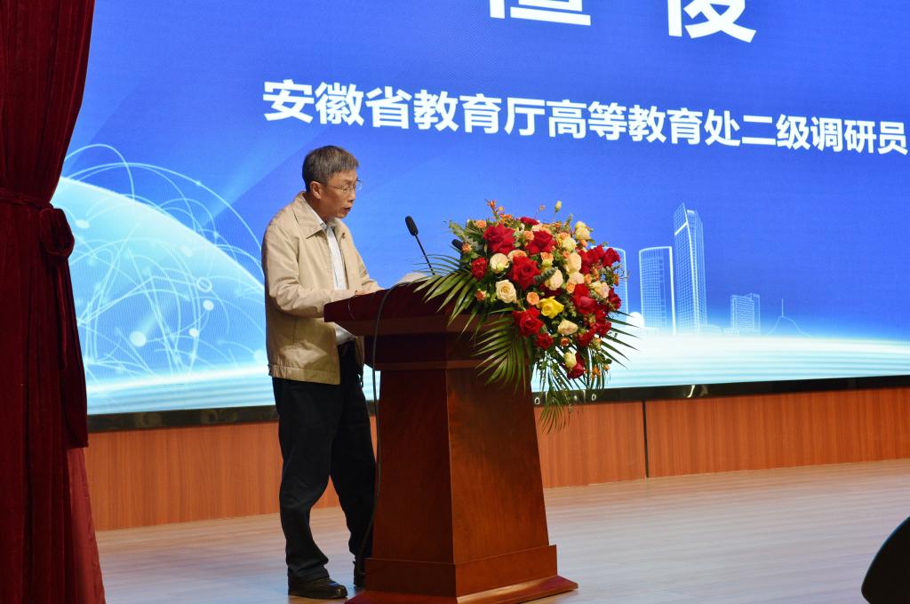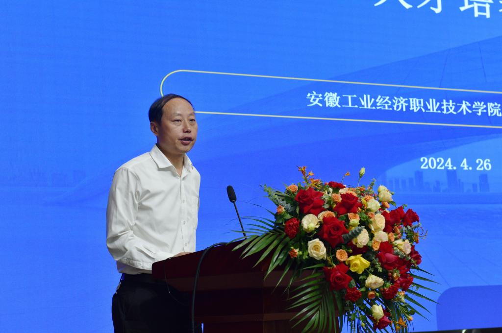 安徽省地礦局一級巡視員侯其標、安徽省教育廳高等教育處二級調研員檀俊、安徽工業經濟職業技術學院黨委書記許衛、安徽大學教務處副處長鮑炎紅、北京弘象科技有限公司副總經理韓曉峰出席大會并致辭,原教育部職業教育與成人教育司二級巡視員劉杰通過視頻致辭,安徽工業經濟職業技術學院黨委副書記、院長劉仁金主持第一階段大會。