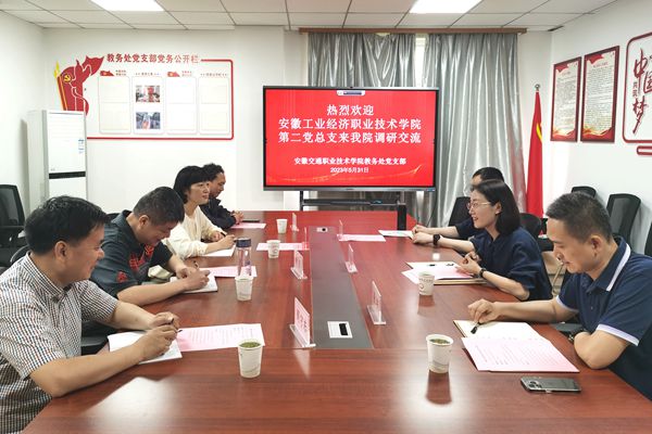 本網訊(第二黨總支:胡技飛 審核:佘東)為做好教學、科研、質量監控、校企合作、信息化建設等工作調查研究,促進學院高質量發展,5月31日上午,安徽工業經濟職業技術學院第二黨總支所屬教務處、科技合作處、信息發展處、質量管理處4個黨支部負責人赴安徽交通職業技術學院就交流座談。