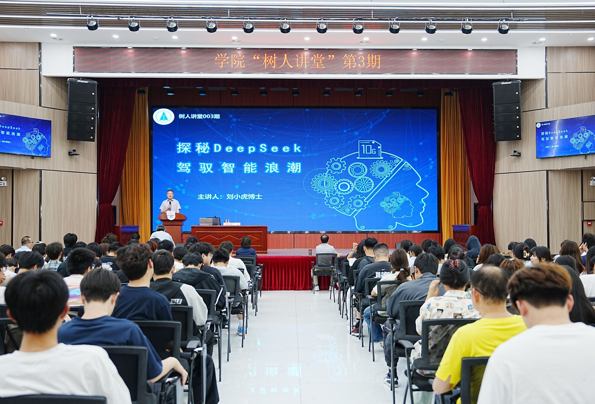 本網訊(黨委宣傳部:朱國梁 審核:江濤 佘東)5月7日下午,學院舉辦“樹人講堂”第3期,計算機與藝術學院劉小虎博士以《探秘DeepSeek魔法:駕馭智能浪潮》為題,為200余名師生帶來了一場關于人工智能前沿技術與產業變革的深度分享。黨委副書記、工會主席周和平,黨委委員、副院長黃雪飛,黨委委員、紀委書記趙凱出席講座,黨委委員、宣傳部部長佘東主持。