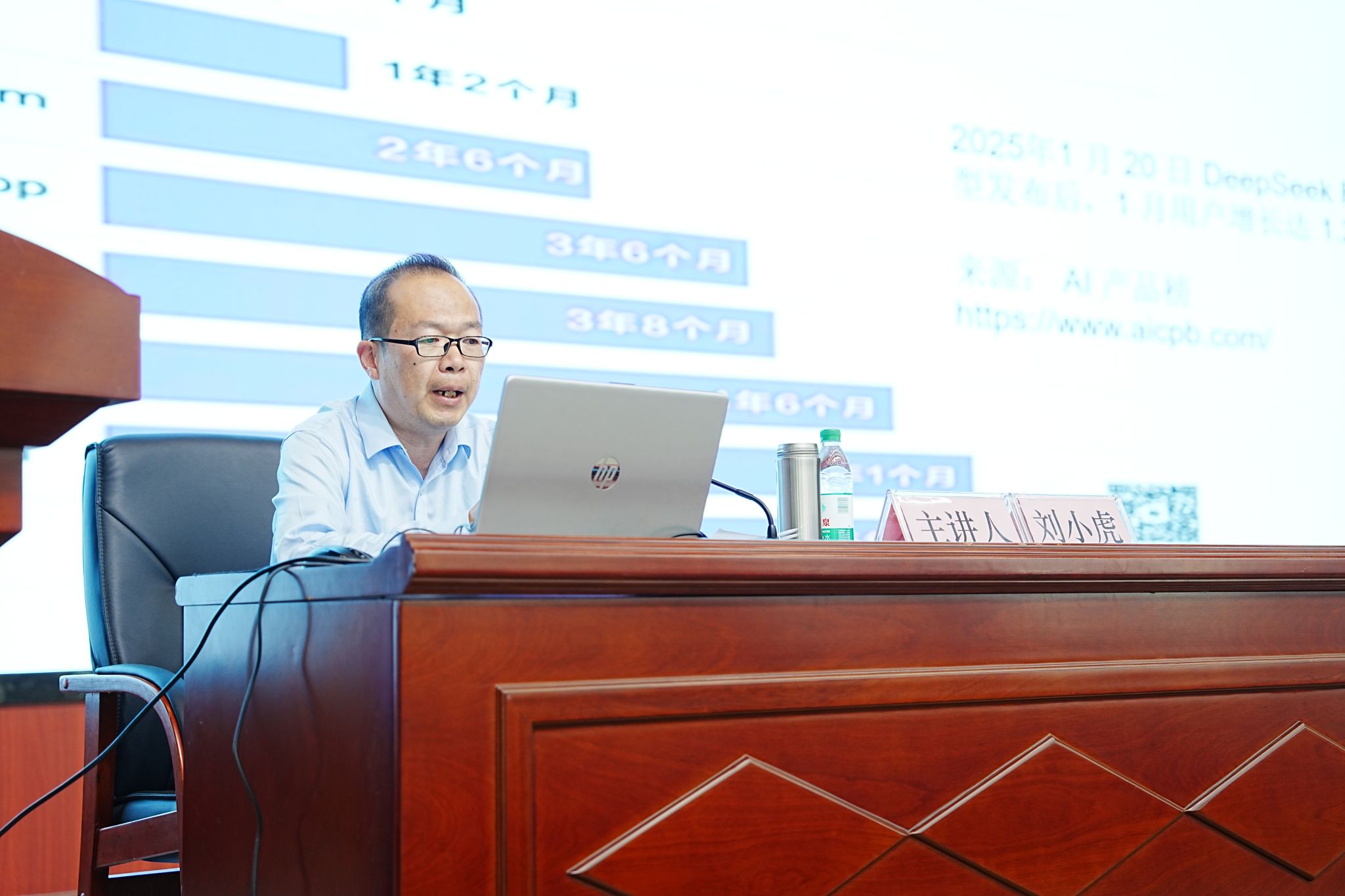 劉小虎博士以DeepSeek模型為切入點,通過生動的比喻和直觀的案例,將復雜的人工智能技術原理轉化為通俗易懂的語言。隨后,劉小虎博士將視角拓展至整個人工智能的發展,梳理了人工智能從誕生以來的發展歷程,分析了各個階段的關鍵突破和技術創新,展示了人工智能給社會帶來的巨大變革和發展機遇。在實踐應用環節,劉小虎博士結合豐富案例,分享了DeepSeek等人工智能模型在文本生成、圖像識別、數據分析等方面的具體使用方式。面對人工智能面臨的挑戰和潛在問題,如倫理道德、算法陷阱等,劉小虎博士引導師生以理性和客觀的態度看待人工智能的發展,鼓勵大家積極探索如何更好地駕馭這一智能浪潮,讓人工智能為人類社會的進步發揮更大的作用。