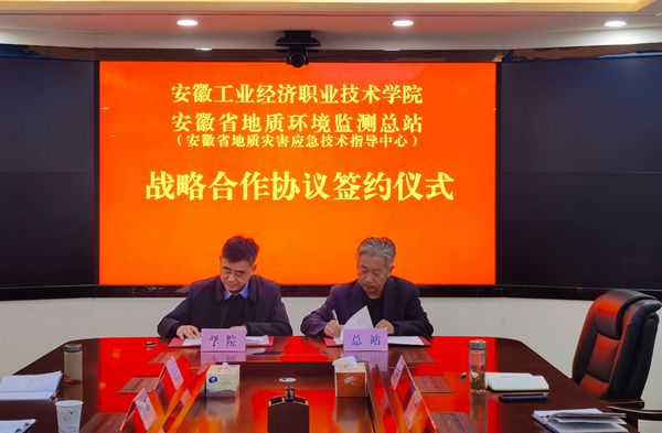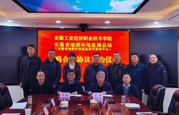 本網訊(科技合作處供稿 審核:佘東)2月27日下午,安徽工業經濟職業技術學院與安徽省地質環境監測總站簽署戰略合作協議。我院黨委副書記、院長許衛與總站黨委書記、站長何清代表雙方簽署了協議。
