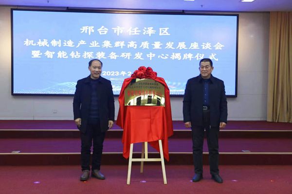座談會上,與會人員共同觀看了任澤區(qū)“機械制造、橡塑制品產(chǎn)業(yè)集群”宣傳片、河北永明地質(zhì)工程機械有限公司宣傳片,并分別圍繞人才引進、科技創(chuàng)新、成果轉(zhuǎn)化、優(yōu)化營商環(huán)境、加快特色產(chǎn)業(yè)集群高質(zhì)量發(fā)展等話題進行深入探討和交流,隨后洪玉明與吳永周共同為智能鉆探裝備研發(fā)中心揭牌。