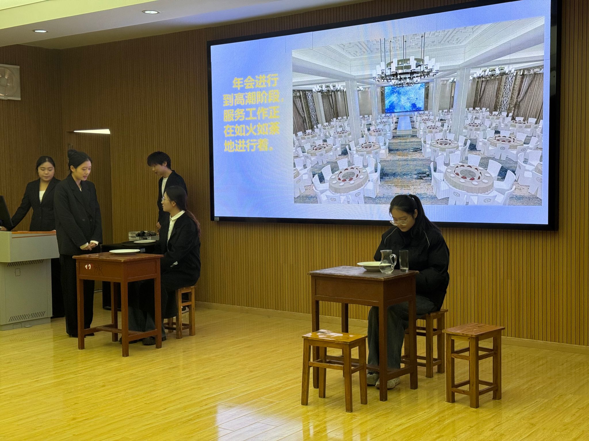 同學(xué)們以實(shí)習(xí)小組為單位,通過情境再現(xiàn)、案例講解等形式,生動(dòng)展示了實(shí)習(xí)期間的收獲與成長。展演內(nèi)容緊扣專業(yè)特色,既注重實(shí)操細(xì)節(jié)的呈現(xiàn),也融入對(duì)酒店行業(yè)發(fā)展趨勢(shì)的思考,充分體現(xiàn)出2024級(jí)學(xué)生扎實(shí)的實(shí)踐能力與良好的專業(yè)素養(yǎng)。