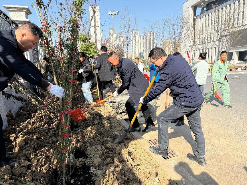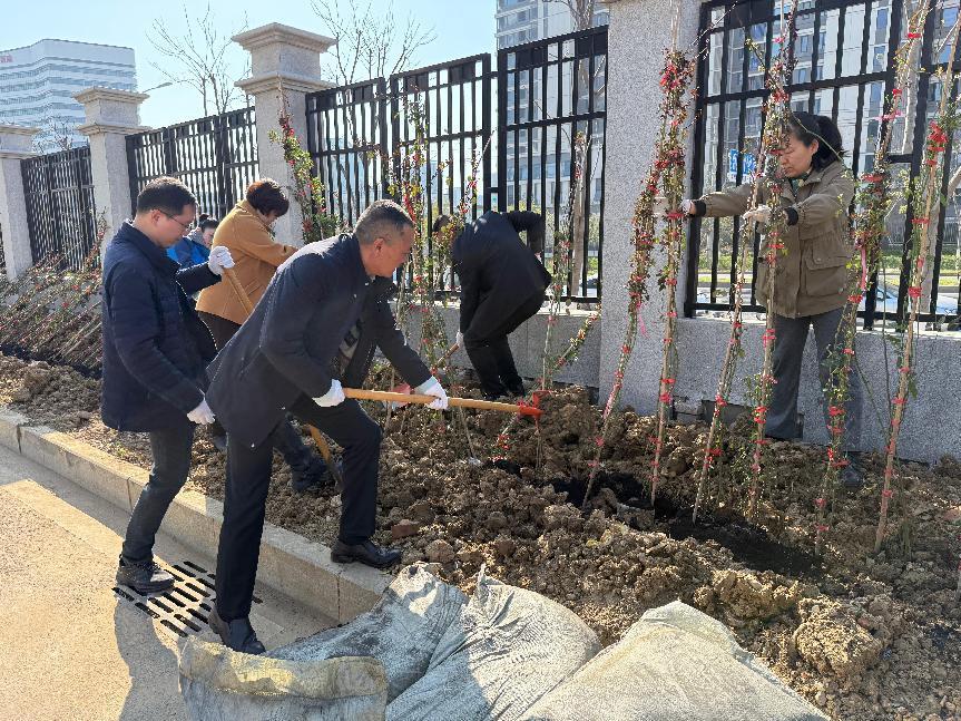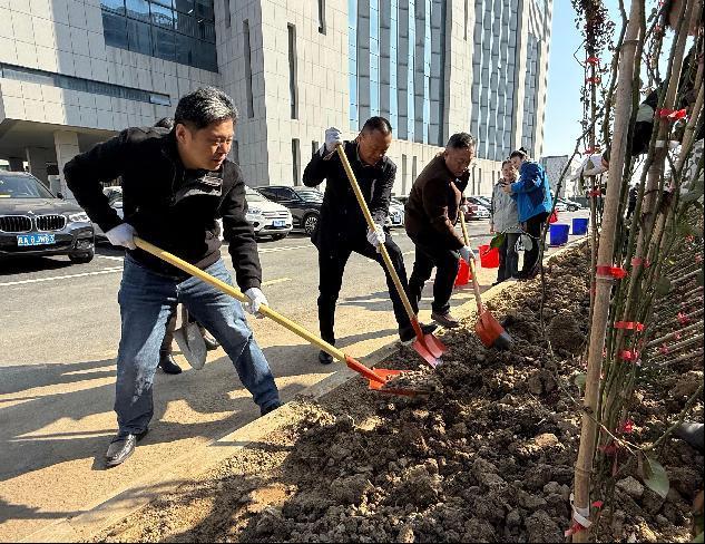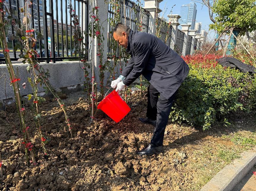 上午9時,校企雙方黨員職工代表在學(xué)院南門東側(cè)圍墻處栽種爬墻月季,從挖穴、回填、施肥、種植到澆水,大家爭先恐后,辛勤勞動,將校園越變越美的祝愿一同種植到腳下的泥土中。完成所有花苗的種植后,大家開心地表示,等到燦爛如霞的月季爬滿柵欄時,一定要到這里拍照“打卡”留念。
