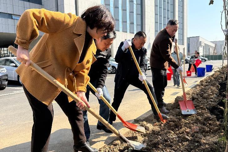 植樹環(huán)節(jié)結(jié)束后,雙方還進(jìn)行了座談交流。田振雨介紹了阡陌物業(yè)集團(tuán)從成立到穩(wěn)定運(yùn)營以來的發(fā)展經(jīng)驗以及勇于承擔(dān)社會責(zé)任的具體舉措,黨總支相關(guān)負(fù)責(zé)人介紹了企業(yè)黨務(wù)工作標(biāo)準(zhǔn)化、黨建經(jīng)營融合發(fā)展的實踐經(jīng)驗。張俊峰介紹了總務(wù)處黨支部組織架構(gòu)、黨建工作及后勤管理工作概況,他希望雙方在今后的工作中持續(xù)加強(qiáng)溝通和交流,以“黨建共建”為載體,深化校企合作,不斷提升服務(wù)品質(zhì),打造更多校園環(huán)境“新亮點(diǎn)”和校園風(fēng)光“打卡點(diǎn)”,不斷美化校園環(huán)境,讓師生員工的校園生活更滿意、更舒心。